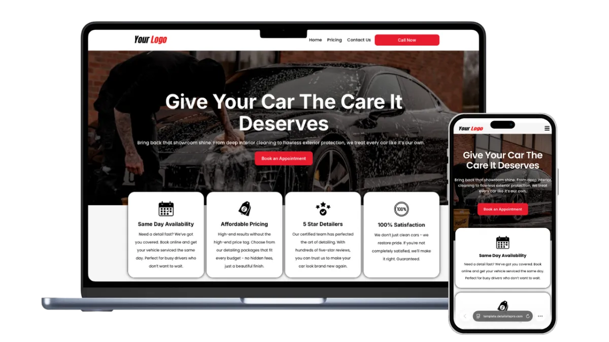For a limited time, your full website buildout is 100% free. Just $99/mo for hosting, CRM, automations, and ongoing updates - everything you need to run your detailing business.